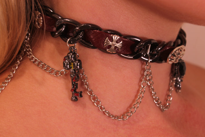 Embrace your dark side with this striking choker, featuring a unique blend of chunky links and elegant silver chains, making it the perfect accessory for any edgy ensemble.